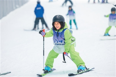 小朋友在深圳·前海冰雪世界学习滑雪。