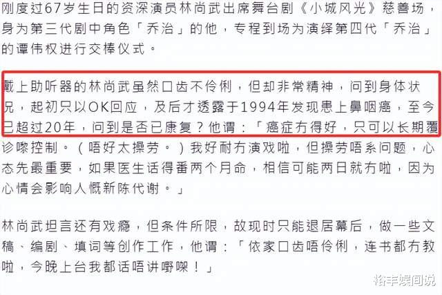 原本林尚武可以在TVB继续效力,但因为健康问题,他不得不提前选择退休。