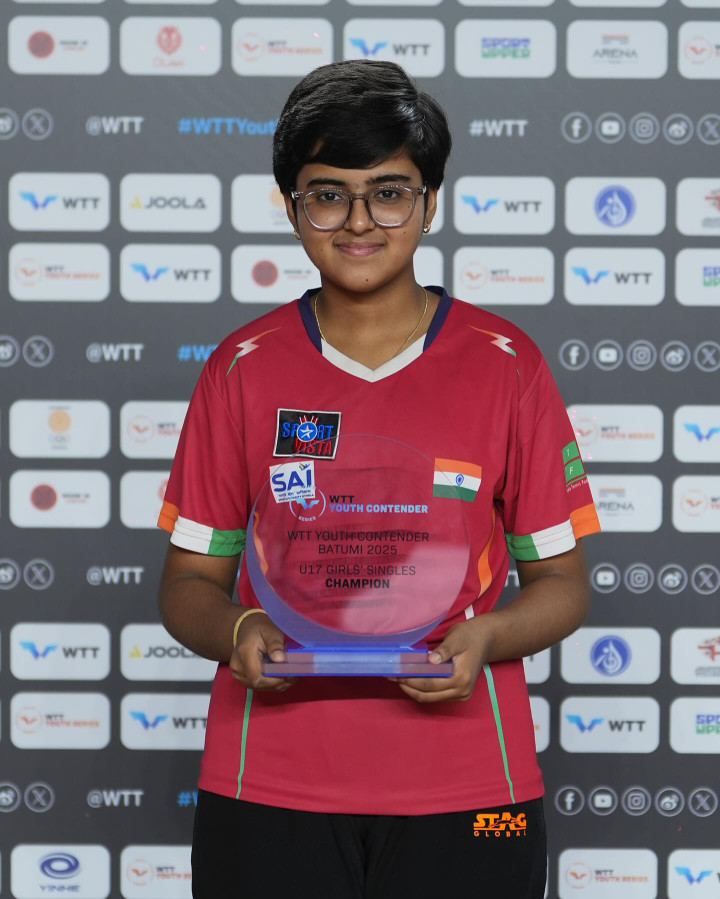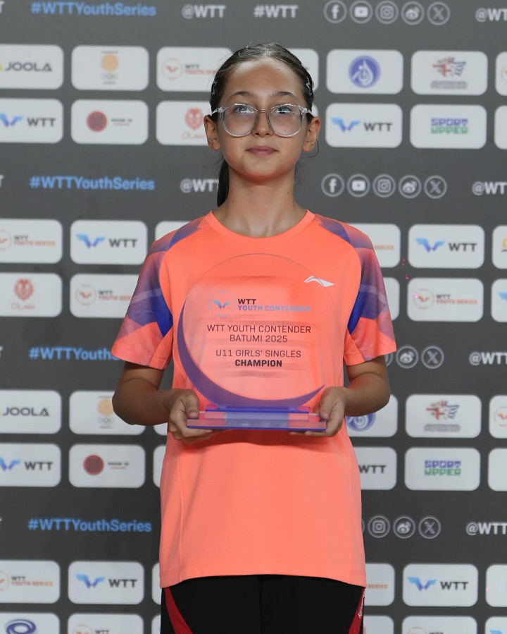 记者WTTins发推特报道,🎉祝贺WTT青少年系列赛巴统站2025冠军诞生!💯🏓U11女单冠军-MehinMirzabalayeva🏆U11男单冠军-LaviNatishanski🏆U13女单冠军-ZhaniyaBekmukhambetova🏆U13男单冠军-NurdauletAzamatuly🏆U15女单冠军-AnkolikaChakrabortyU15男单冠军-YhaliZagoriU15混双冠军-AssylkhanMagzumbekov/MariyaLukyanovaU17女单冠军-AnkolikaChakraborty🏆U17男单冠军-NathanDoussinet🏆U19女单冠军-ShriyaAnand🏆U19男单冠军-SamuelArpas🏆U19混双冠军-AlanKurmangaliyev/KarolinaHolda#TableTennis#WTTYouthSeries